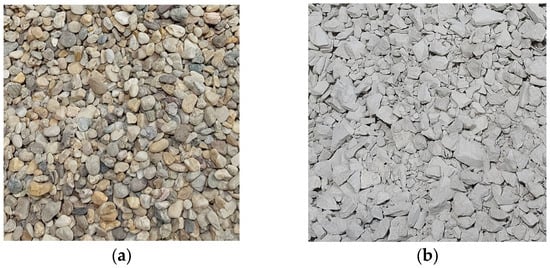 Aggregates: Quartz gravel (left) and RA of 3D printed concrete waste (right). Image courtesy of Applied Sciences.