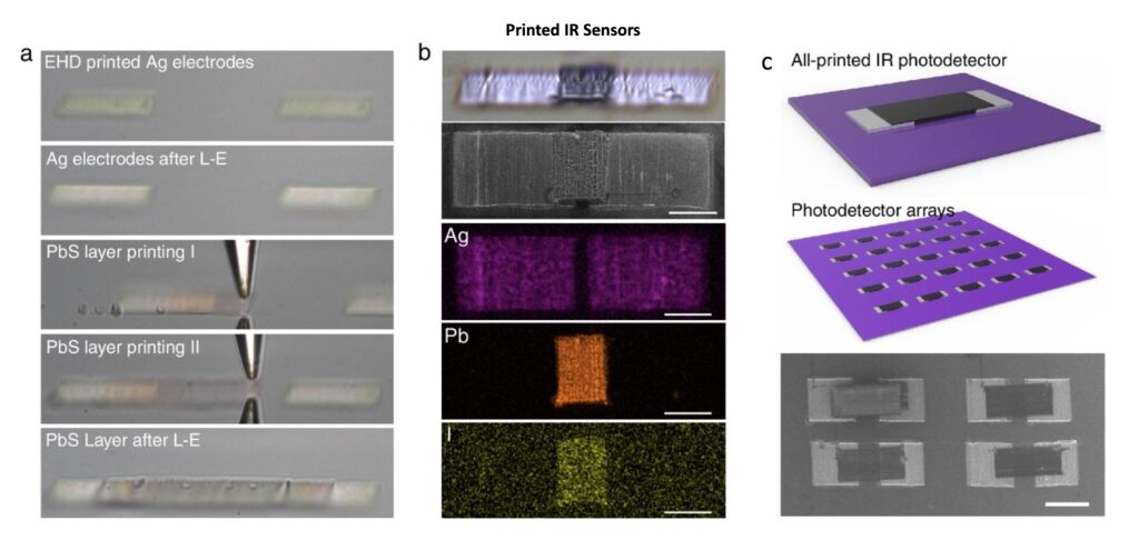 Infrared sensors, or “electronic eyes,” that act as the “seeing” part in devices like autonomous vehicle LiDAR, or smartphone facial recognition, are able to recognize objects when when it’s dark. But a team of researchers from KAIST, Korea University, and the University of Hong Kong developed a 3D printing process that can manufacture infrared sensors in any size or shape you want—at room temperature. Infrared sensors convert invisible infrared signals into electrical signals, and are very important for a lot of electronic technologies these days, which is why flexible form factor and lower size and weight are a big deal for these applications. Traditional processes for manufacturing semiconductors are fine for mass production, but can’t adapt quickly to meet changing technology demands, and also require high-temperature processing, which limits materials. These researchers are using metal, semiconductor, and insulator materials in the form of liquid nanocrystal inks to print core infrared sensor components at room temperature. They report that they’ve successfully 3D printed tiny infrared sensors that measure less than one-tenth the thickness of a human hair, and achieved great electrical performance as well.